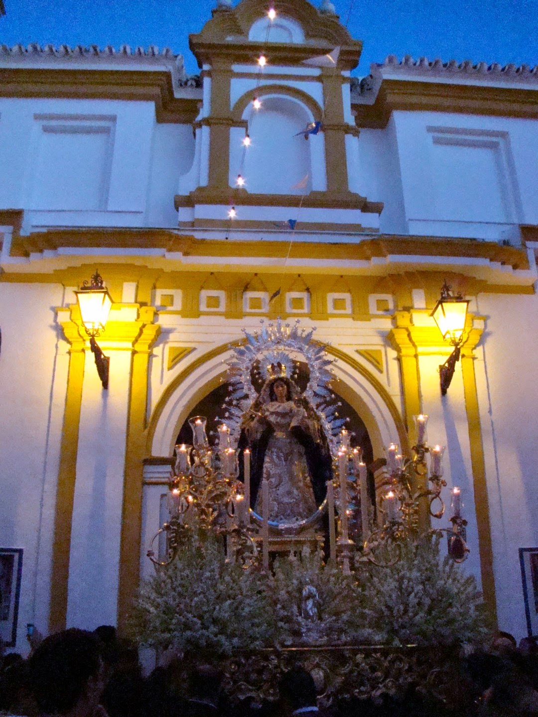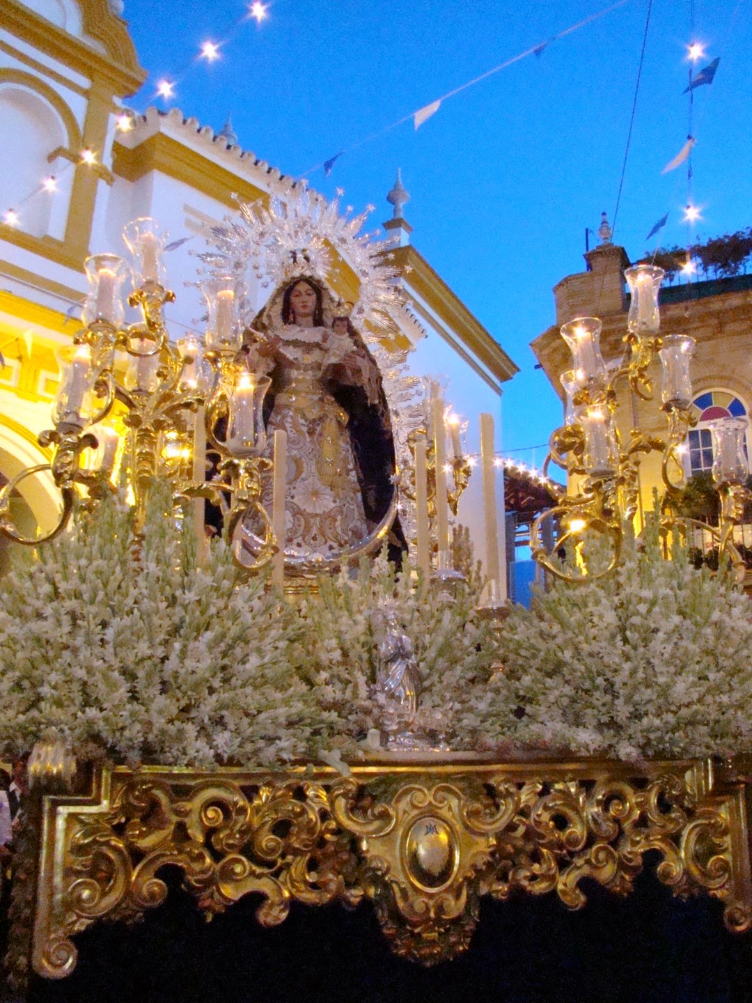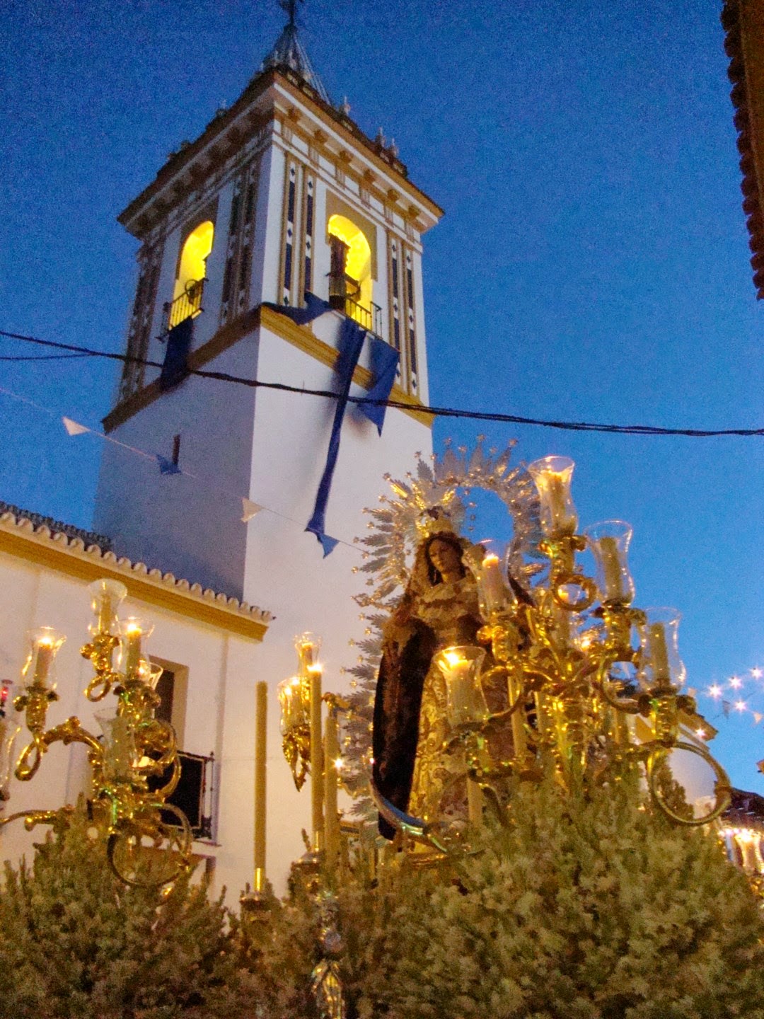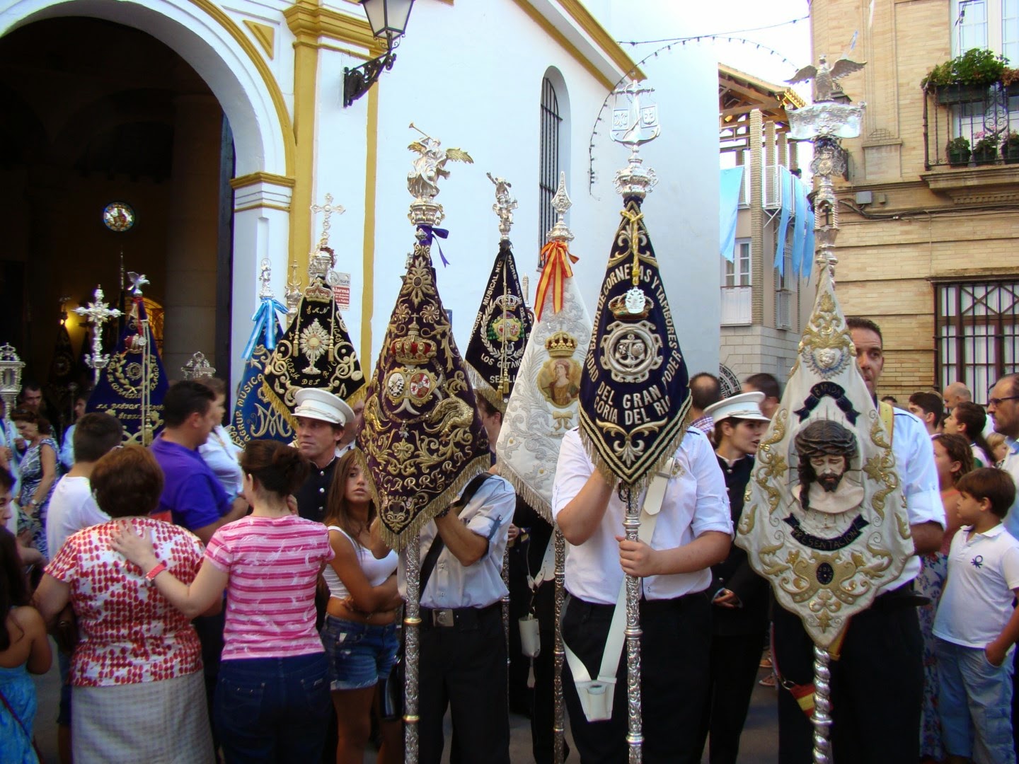 El 8 de septiembre festividad de la Natividad de la Virgen María se celebran gran cantidad de procesiones de carácter glorioso en toda la provincia de Sevilla, sobre todo de imágenes marianas que son patronas de sus respectivas localidades. Les mostramos imágenes de la realizada en Coria del Río en honor a su patrona Nª. Sª de la Estrella. Como curiosidad resaltar que la banda que abría el cortejo estaba compuesta por músicos de diferentes agrupaciones musicales que llevaban sus banderines en la cabecera de la misma. El acompañamiento musical detrás del paso de la virgen lo realizó la Banda Municipal de la localidad.