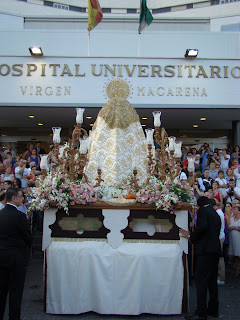 El pasado sábado 13 de julio procesionó por las calles aledañas a la parroquia de San Leandro la imagen titular de la Hermandad Sacramental del Santísimo Cristo de la Bondad, Nª Sª del Carmen y San Leandro. La imagen de la Virgen del Carmen es obra de Francisco Buiza realizada en 1962. En su recorrido visita el Hospital de la Macarena donde es recibida por el personal sanitario y enfermos. El acompañamiento musical en esta ocasión lo realizó la Asociación Musical de La Algaba. La Virgen y el Niño estrenaban los escapularios bordados.