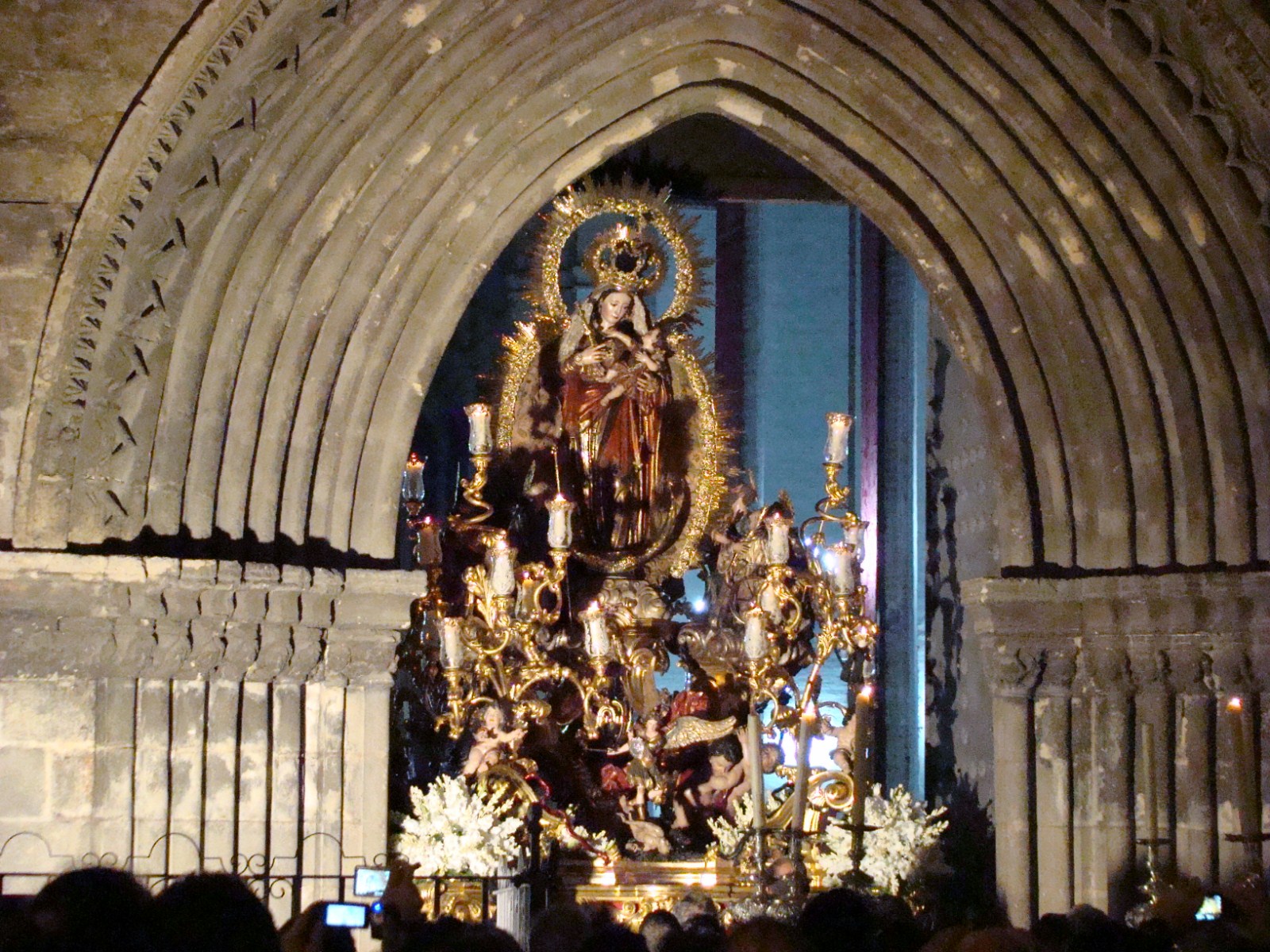 » El domingo 11 de noviembre salió en procesión desde la iglesia de Omniun Santorum la imagen de Nª Sª Reina de Todos los Santos, que recorrió las calles del barrio de la Feria poniendo un brillante colofón al ciclo de las «glorias» sevillanas en el presente año 2012. El paso lucia magnífico como siempre con el acompañamiento musical de la Banda del Maestro Tejera.»