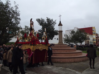 «En la tarde del día de su festividad, el 20 de enero, procesionó por las calles de la localidad sevillana de La Puebla del Río, la antigua imagen de su patrón, San Sebastián. Esta imagen procesiona dos veces al año por su pueblo, una, en la fiesta del Corpus Christi y la segunda, el 20 de enero. El santo, arropado de mucho público a pesar de lo desapacible del tiempo, partió en procesión a las 17:00 horas, desde la parroquia de Nuestra Señora de la Granada, acompañado de todas las hermandades del municipio con estandarte y varas. El acompañamiento musical fue el de la Banda Municipal de la localidad. La procesión discurre por varias calles hasta que llega a un extremo del pueblo donde se encuentra la Cruz. Allí, el paso rodea este crucero seguido de todos los fieles. La tradición marca que las jóvenes que querían conseguir pareja debían dar la vuelta con el santo en ese mismo sentido y no al contrario, algo que hoy se sigue haciendo. Finalmente la procesión aceleró mucho el paso porque comenzó a llover y se recogió a las 18:20 en la ermita de San Sebastián».