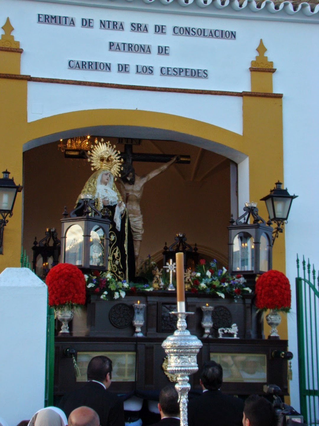 Cada cuatro años sale en procesión el Santísimo Cristo de la Veracruz de la localidad sevillana de Carrión de los Céspedes, este crucificado es titular de la Hermandad de Nª Sª de Consolación, en el paso es acompañado por la Virgen de la Soledad. La procesión ha tenido lugar el sábado 5 de abril, siempre sale a la misma hora pero por aquello del calendario en esta ocasión ha salido al caer la tarde lo que ha originado bellos contrastes de luz. En el cortejo han participado varias representaciones de Hermandades de localidades próximas tales como Veracruz de Albaida del Aljarafe, Aznalcóllar, Hinojos, Olivares y Mairena del Alcor. Así como la Hermandad de la Estrella y del Cristo de Burgos de Chucena. De Sevilla capital acudió la Hermandad de la Sed que también tiene a su titular mariana con la advocación de Consolación.