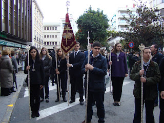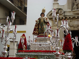 » En la tarde del domingo 25 de enero ha procesionado desde la iglesia del Santo Ángel la imagen del Niño Jesús de Praga obra de nuestro hermano el imaginero Fernando Aguado. Como es tradición numerosas hermandades han estado presentes, representadas por sus grupos jovenes.El grupo joven de la Hermandad de Las Aguas ha asistido corporativamente a dicha procesión portando el guión del Rosario y varas.»