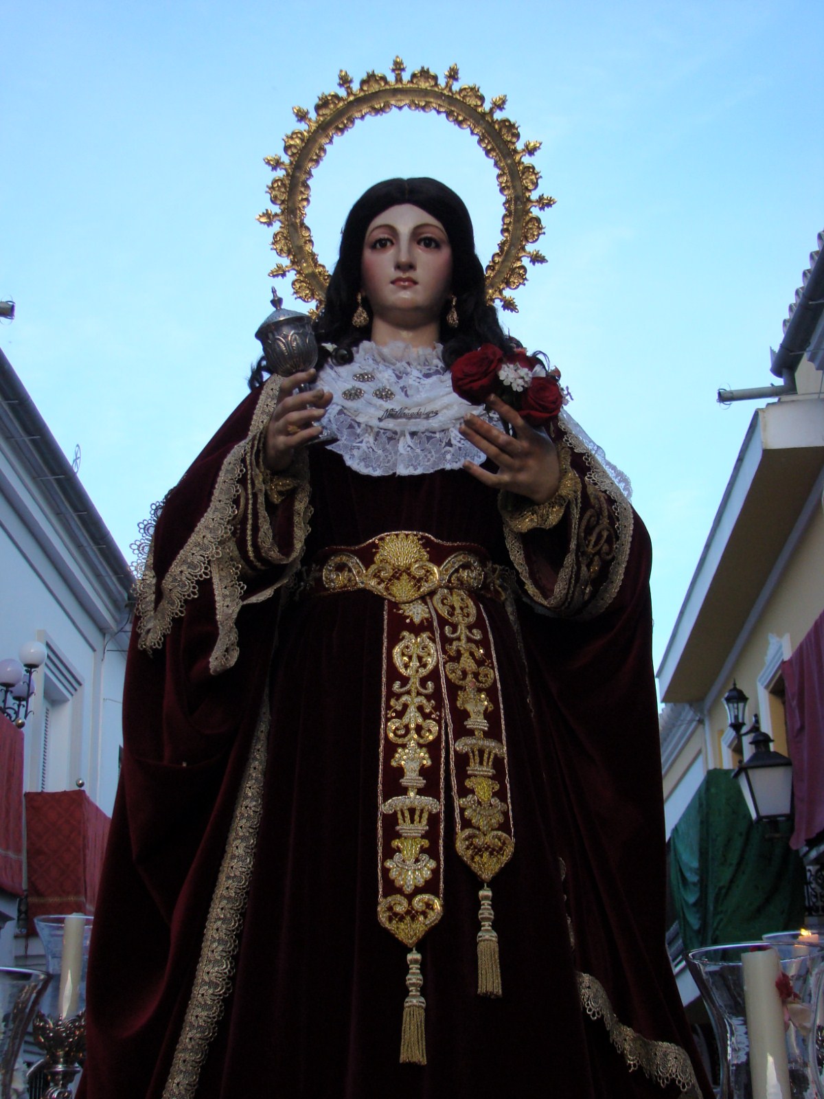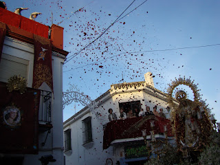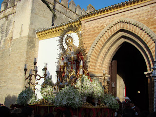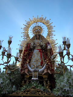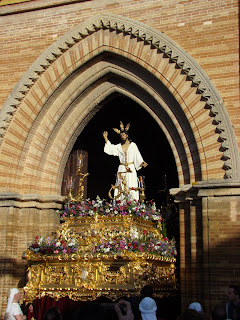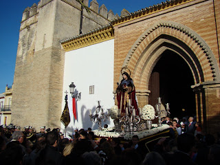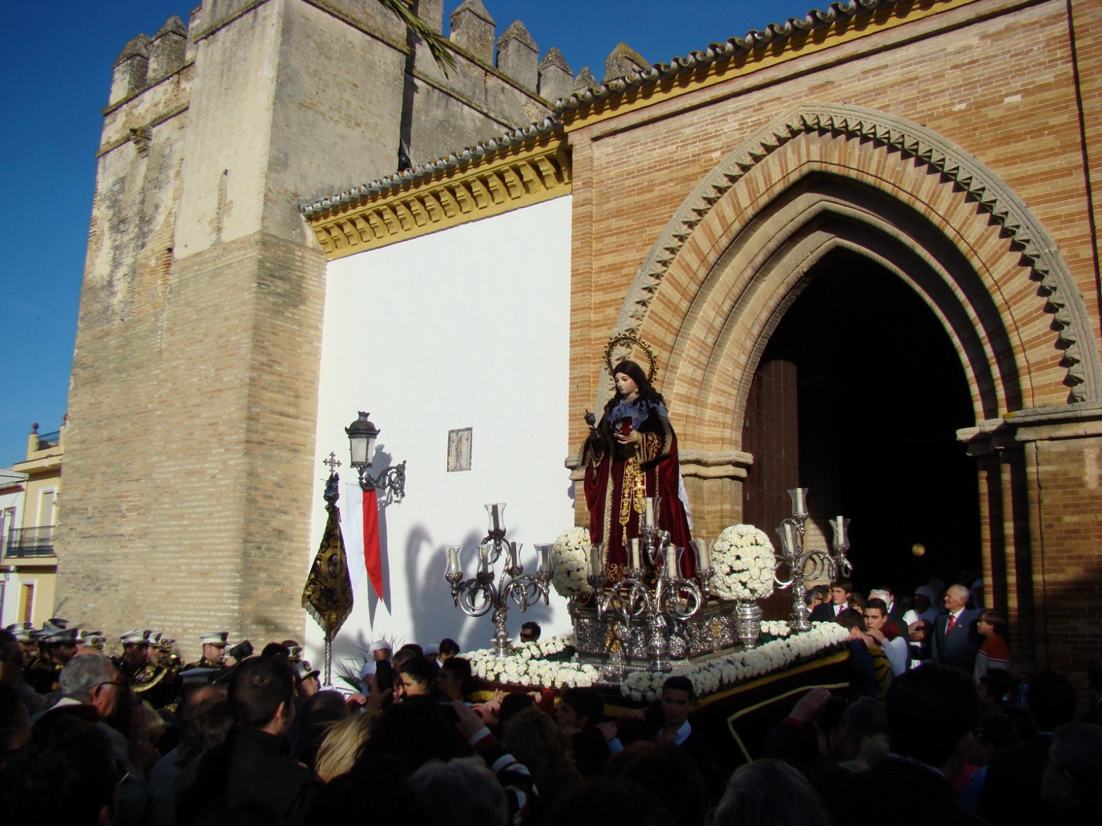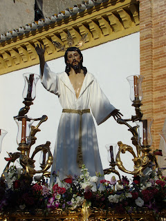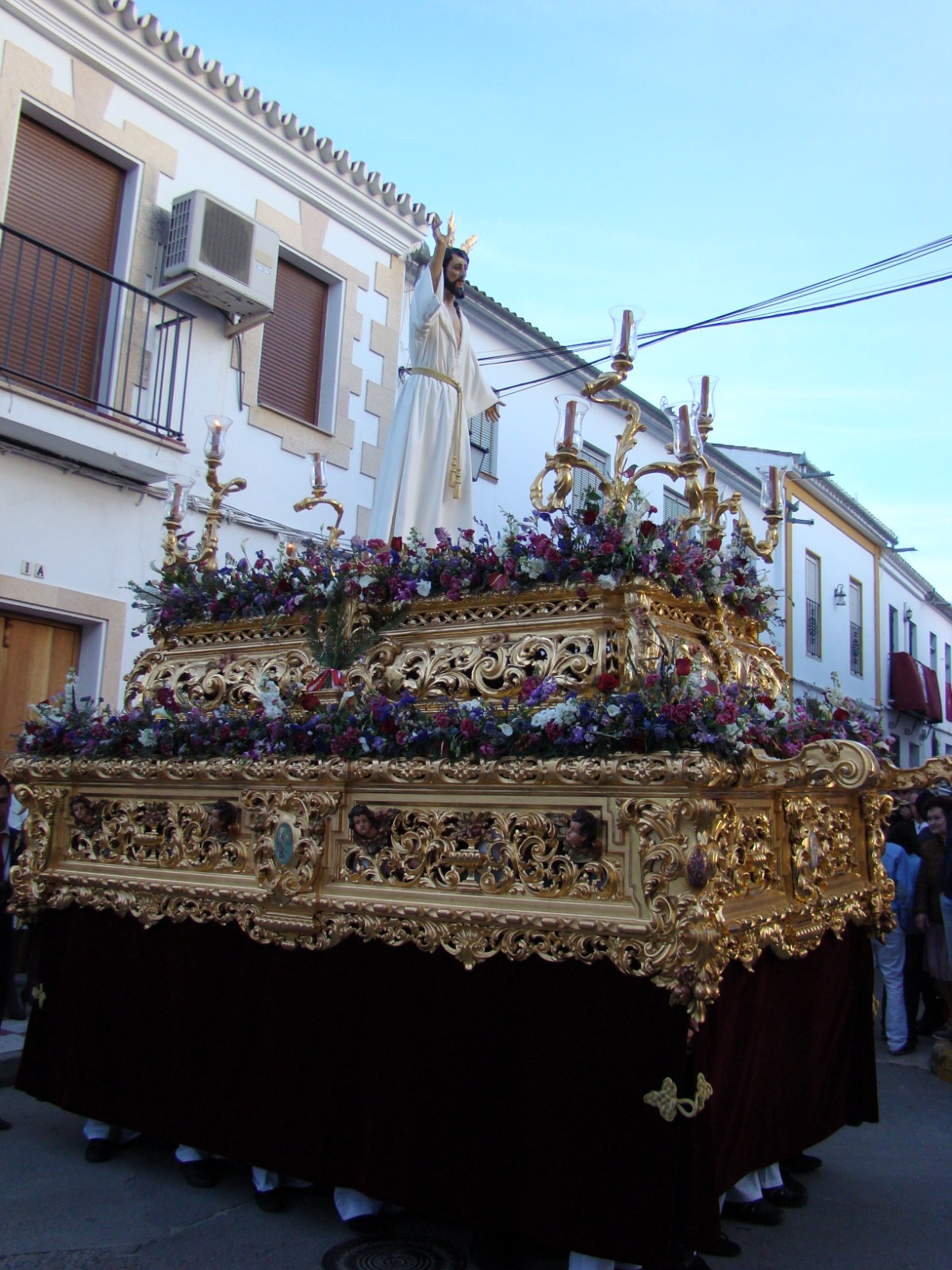 La Hermandad de la Soledad de la localidad onubense de Hinojos realiza todos los años el Domingo de Resurrección, la procesión de gloria con las imágenes de Santa María Magdalena, Cristo Resucitado y Nª Sª de la Soledad. Debido a las inclemencias meteorológicas, tuvo que aplazar dicha salida procesional hasta el sábado 6 de abril, lo que hemos aprovechado para acercarnos hasta Hinojos y ofrecerles este reportaje sobre dicha procesión. La Virgen lucia el manto rojo de Juan Manuel Rodríguez Ojeda recientemente restaurado por Grande de León.