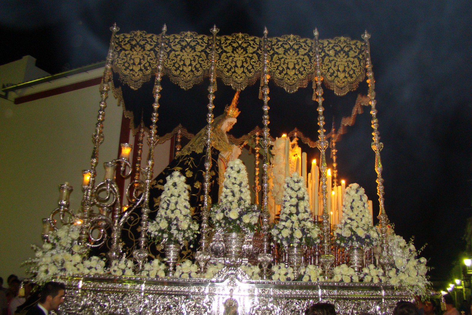 » El sábado 15 de octubre en la localidad onubense de Hinojos procesionó de manera extraordinaria el paso de palio de Nª Sª de la Soledad con motivo de conmemorar el XX aniversario de la estancia de la Santísima Virgen en el convento de las Hermanas de la Cruz de Sevilla. También sirvió la procesión para inaugurar y bendecir el monumento que el municipio ha dedicado a Santa Ángela de la Cruz. El acompañamiento musical lo realizó la Banda de Nª Sª del Carmen de Salteras. La Virgen recorrió las principales calles en medio del fervor de sus devotos. Un detalle muy emotivo es que el paso de la Virgen al llegar a los domicilios donde habia personas de avanzada edad o enfermas se giraba para su mejor contemplación y a estas personas le daban como recuerdo una flor del paso».