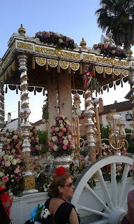El pasado 19 de Mayo de 2015 quedara siempre grabado en el recuerdo para el pueblo de Salteras y su Hermandad del Rocío, por el primer camino junto a su madrina la Hermandad del Rocío de Olivares. La carreta es diseño de Reyes Villadiego y la orfebrería de Jesús Méndez, el simpecado es obra de Bordados Salteras. Desde Blog morado felicitamos a las dos hermandades y les dejamos algunas fotografías de la llegada de la Hermandad de Salteras al vecino pueblo de Olivares.