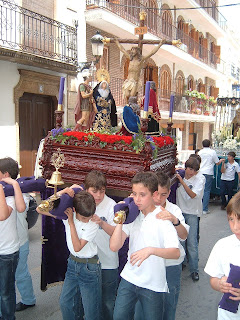 Una vez pasada la Semana Santa, en los pueblos de la campiña cordobesa es tradición celebrar la «Semana Santa Chiquita». Son muy bonitas las de Aguilar de la Frontera, Lucena, La Rambla, Montilla y sobre todo la de Puente Genil. El apelitivo de «chiquita» es por que la hacen los niños que son los protagonistas de la procesión, auténtica escuela de cofrades, además los pasos también tienen las dimensiones acordes con sus portadores y suelen ser fidedignas miniaturas de los pasos grandes. La particularidad de Puente Genil con sus múltiples representaciones de apóstoles, profétas, romanos y personajes bíblicos, hacen de esta procesión una ocasión singular para conocerla. La Semana Santa Chiquita se realiza en Puente Genil los primeros días del mes de Mayo y en concreto ésta que veis en imágenes es del día 3 de mayo que corresponde a la procesión de Nº Padre Jesús Nazareno.