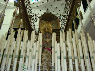 El paso de palio de Mª Santísima de la Sangre de la Hermandad de la Veracruz de la localidad de Huevar del Aljarafe tiene la particularidad de que en las primeras tandas de cirios de su candelería, en cada uno de ellos lleva impreso una pegatina con los nombres de los hermanos fallecidos durante el año en memoria de los mismos. Además la Hermandad tiene el detalle de una vez desmontado el paso entregarles a los familiares del hermano fallecido el cirio para que lo guarden como signo de homenaje y recuerdo.