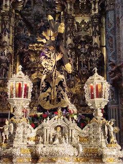 El Cristo de la Expiración ( Cachorro) iba con corona de espinas y potencias de oro, hecho que tampoco es frecuente de ver, al existir la creencia entre muchos hermanos (leyenda urbana) de que cuando se las ponen es un seguro de lluvia.