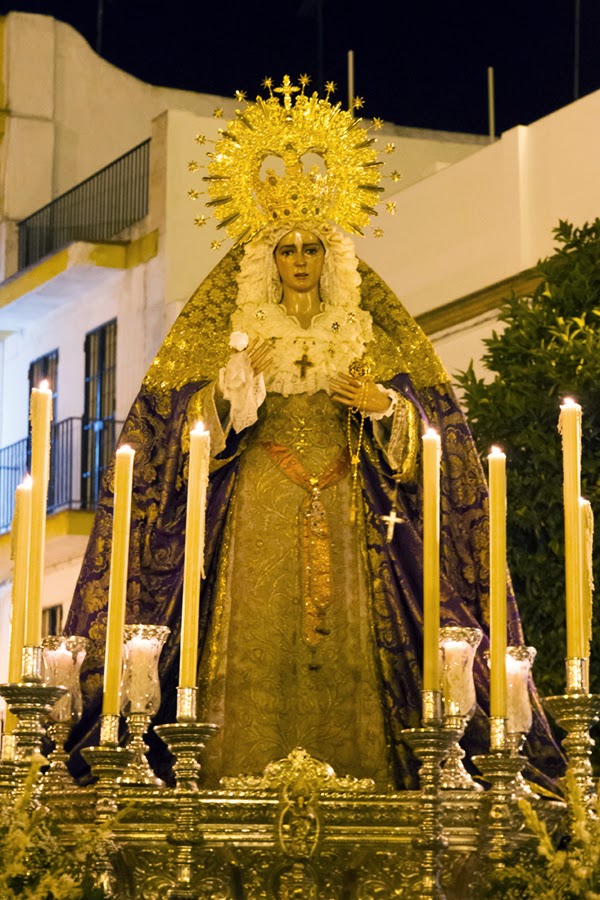 Con motivo de conmemorarse el cincuenta aniversario de la bendición de la imagen de Nª. Sª. y Madre de las Angustias, titular dolorosa de la Hermandad del Descendimiento de la localidad sevillana de Carmona, el pasado viernes 26 de septiembre se realizó un solemne traslado en andas durante el cual se rezó el santo Rosario, desde su sede canónica la iglesia de San Francisco hasta la iglesia parroquial de San Pedro para allí celebrar al día siguiente la solemne función en recuerdo de los cincuenta años de pertenencia a la hermandad de esta imagen obra de Antonio Castillo Lastrucci.