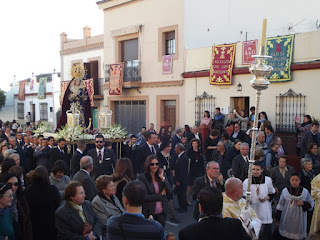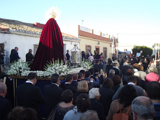 El cortejo estaba formado por varios largos tramos de hermanos y hermanas (algunas con mantilla negra) una capilla musical y las representaciones de las otras dos hermandades de la localidad (Mercedes y Rocío). A la llegada al cementerio se celebró una Eucaristía en honor de los difuntos de la localidad y después de la misma volvió la imagen a la parroquia de San Ildefonso.