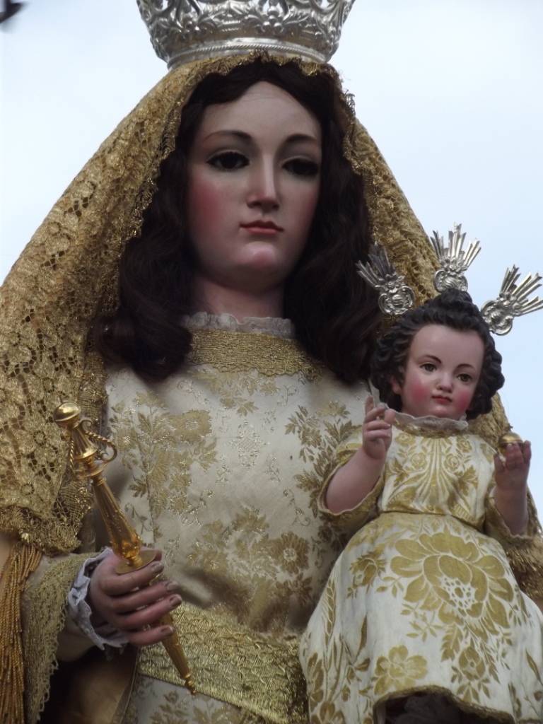 La tarde comenzó con una misa cantada a las 17:30 y tras ella se procedió al traslado de las imágenes en andas, cedidas todas por hermandades de localidades cercanas o de la propia capital hispalense. Todas, hicieron un recorrido común, por calles engalanadas, siguiendo el orden de salida de las cofradías en Semana Santa. Al final del cortejo se situó la banda municipal de la localidad, tocando marchas procesionales. El pueblo, sin duda, se volcó con este acontecimiento y se echó a la calle.
