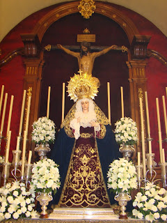 » El triduo a nuestra titular en este año 2010 ha sido el estreno oficial del nuevo equipo de priostia de la hermandad y a su vez el estreno de Antonio Bejarano vistiendo a Nª Sª de Guadalupe. En estas imágenes pueden observar el altar montado para la ocasión así como el tocado de la santísima virgen.»