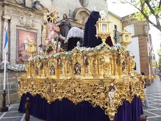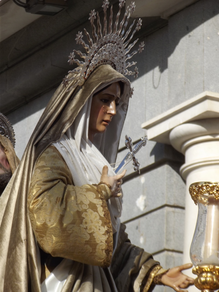 Octavo encuentro » Jesús perdido,es hallado en el templo» representado por la imagen de Santa María de la Paz y Concordia. Obra anónima de finales del siglo XVI o principios del XVII. Procesiona bajo el antiguo palio de la Hermandad de las Penas de San Vicente( Sevilla).