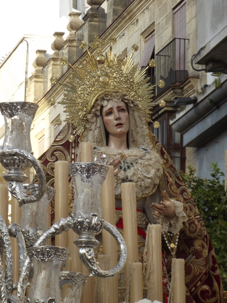 Para la procesión vespertina compuesta por catorce pasos con imágenes marianas se dispuso que los traslados procesionales para el rezo del Vía Lucis (versión mariana del Vía Crucis), se realizaran con bandas de música o coros, tanto a la ida como a la vuelta. No hubo acompañamiento musical en el recorrido oficial dispuesto, el cual comenzaba en la calle Larga y culminaba en la plaza de la Asunción. Hubo sillas y palcos colocados en gran parte del recorrido. A la llegada de los pasos a la Alameda Vieja, el obispo de la diócesis y representaciones de los conventos de la ciudad rezaron los diferentes “encuentros”, en un altar presidido por el cirio pascual y el simpecado de la Hermandad del Rocío de Jerez de la Frontera.