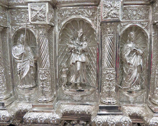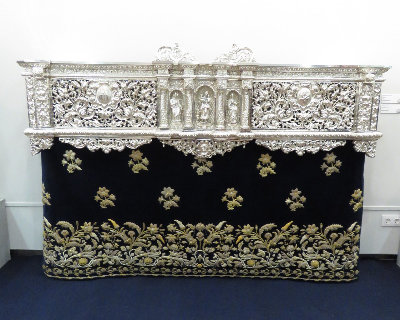 En primer lugar el frontal delantero del respiradero del palio de Nª Sª de las Lágrimas obra de eduardo Seco Imberg en 1938, el faldón bordado es obra de Jesús Rosado Borja en 2012.