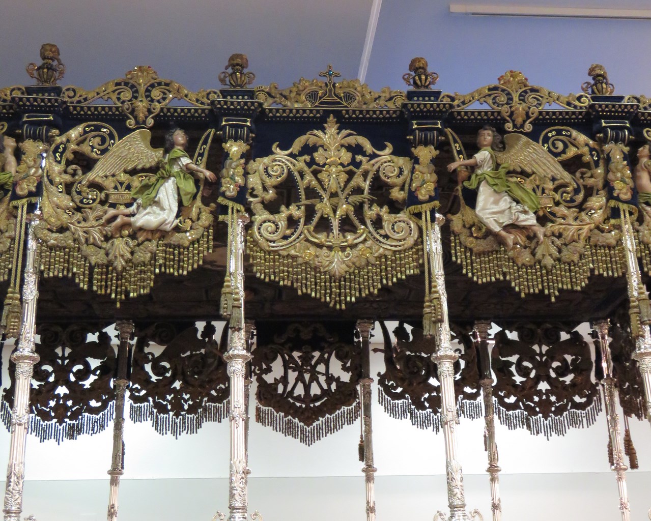 Palio de Nª. Sª. de la Palma de la Hermandad del Buen Fin, diseñado por Ignacio Gómez Millán, bordados del taller de José Caro y las tallas realizadas por Antonio Castillo Lastrucci en 1930. Los varales son obra de Eduardo Seco Imberg en ese mismo año y enriquecidos por orfebrería Andaluza en1992.